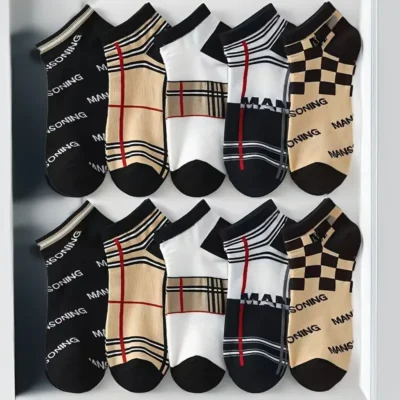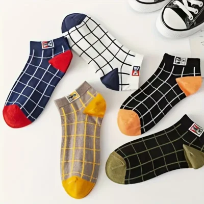 17 Pares de Meias de Tornozelo para Homens e Mulheres – Leves de Verão Fina Respirável Retro Letra Impressão Meias, Cores e Padrões Assortidos (Riscas, Xadrez, Bolinhas) para Uso Casual e Formal, Material de Meia Confortável, Vestuário Casual, Meias Fashion, Material de Meia Durável